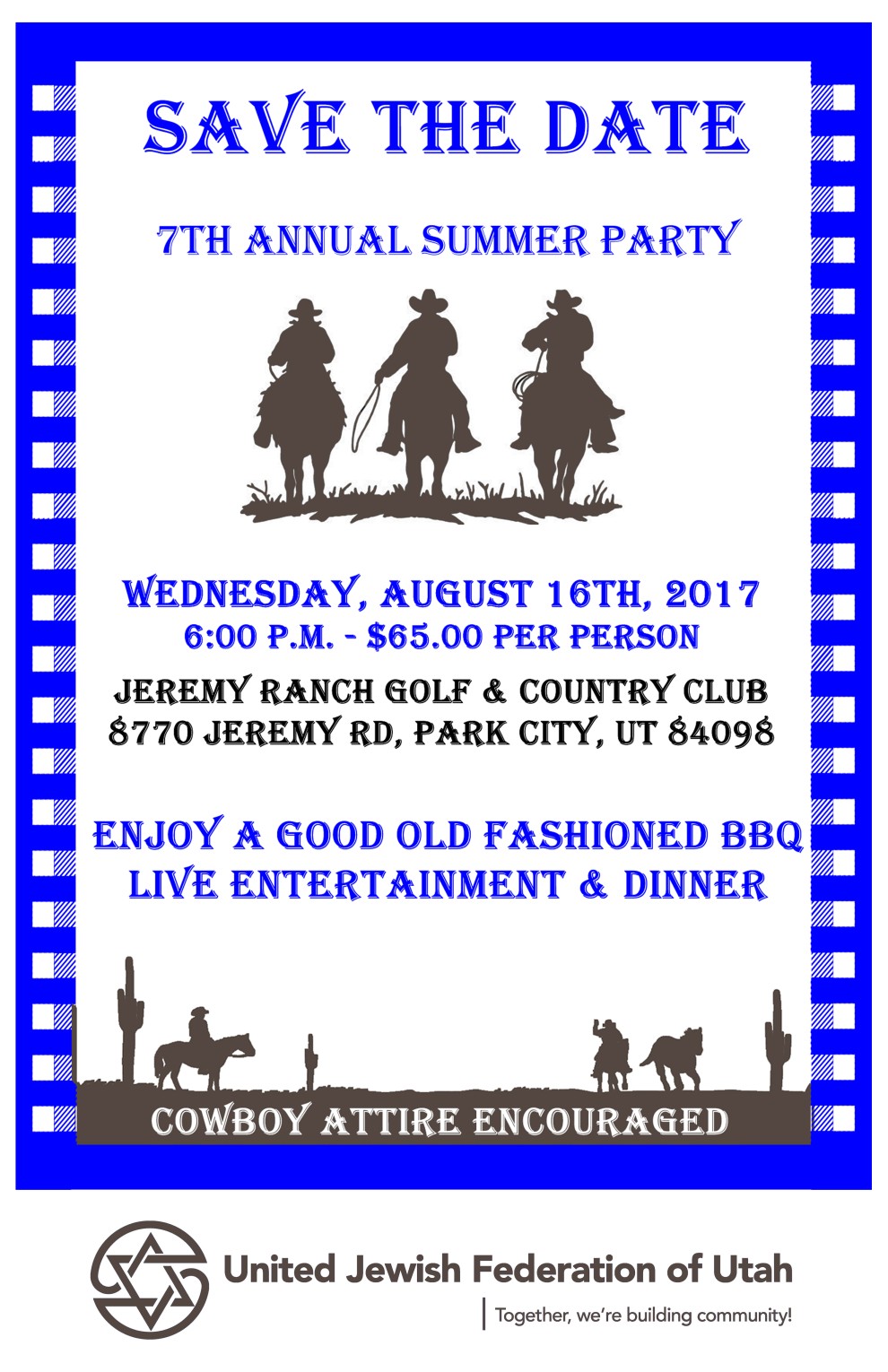 Please join us for a fun evening of BBQ dinner and live entertainment at our 7th Annual Summer Party on Wednesday, August 16th, 6:00 pm at Jeremy Ranch Golf & Country Club, 8770 Jeremy RD, Park City, UT 84098.