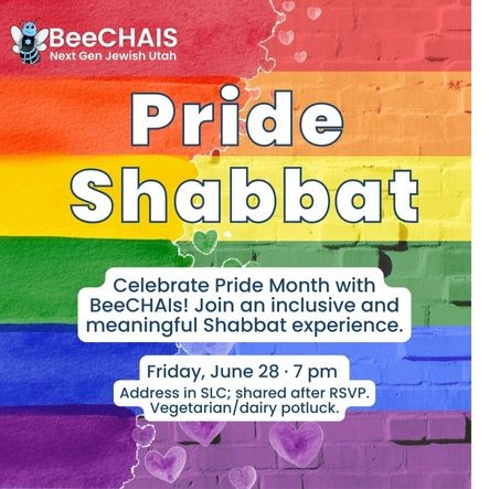 Join our BeeCHAIs community for Pride Shabbat! Whether you are part of the LGBTQ+ community or an ally, join us to bring in Shabbat with Pride. Everyone is welcome! :)