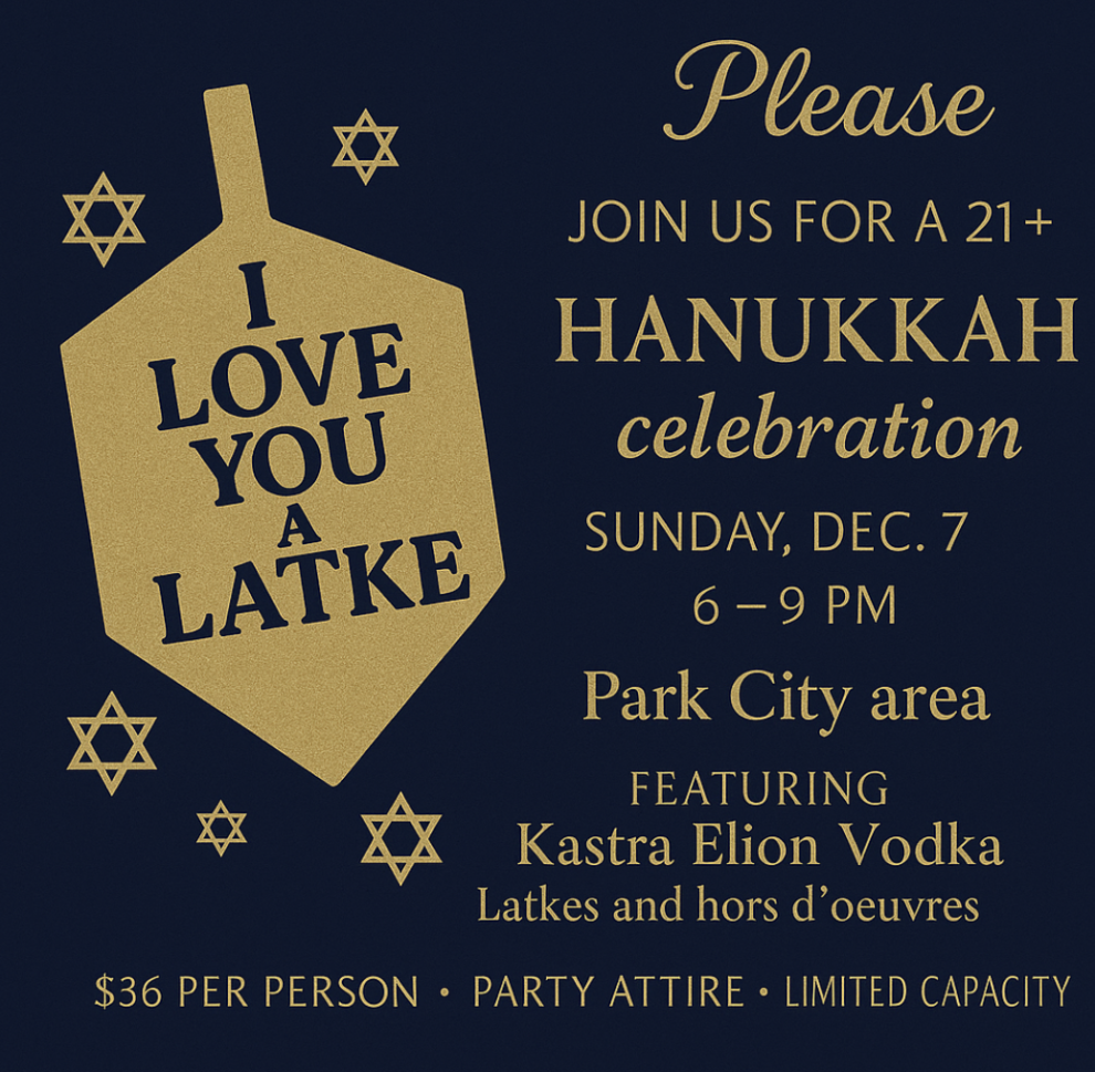 Hanukkah Celebration (21+ event): December 7, 6-9 PM. Park City area (location shared after registration).