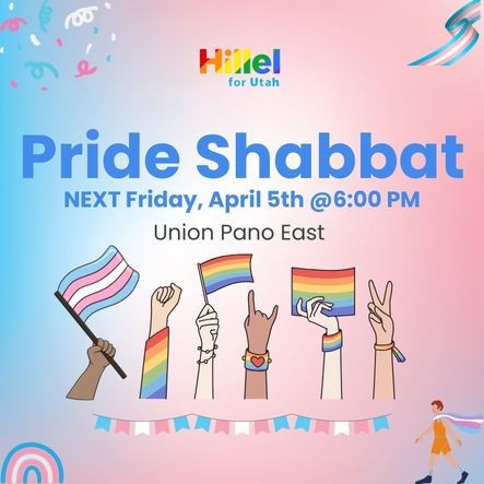 Join Hillel for Utah for Pride Shabbat during the University of Utah's Pride Week! This is an important evening of prayer, song, dinner, and discussion about our diverse Jewish perspectives!