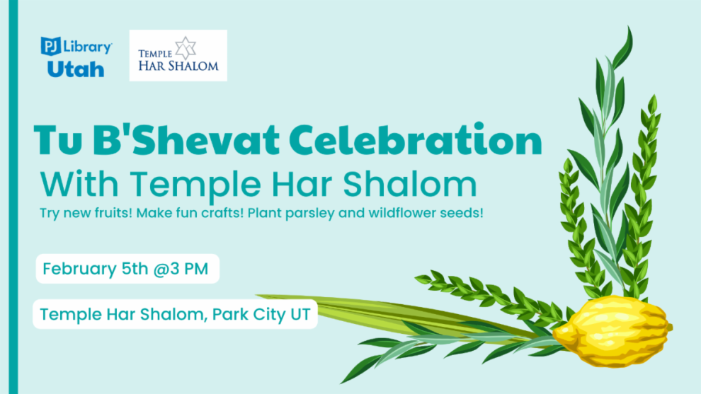 PJ Library Utah and Temple Har Shalom are partnering for a Tu B'Shevat Celebration! PJ Library is a Federation program for young families with kids 6 months - 9 years old. This event is a great opportunity for young families to celebrate Tu B'Shevat, the new year for trees.