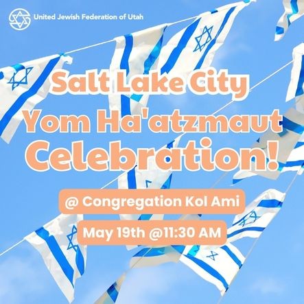 Celebrate Israel's 76th year of Independence with us in Salt Lake City. There will be carnival games and bouncy houses for kids of all ages. Food and beverages will be for sale. Enjoy a piece of birthday cake as we celebrate Israel's birthday. This is event is co-sponsored by the United Jewish Federation of Utah & Congregation Kol Ami.