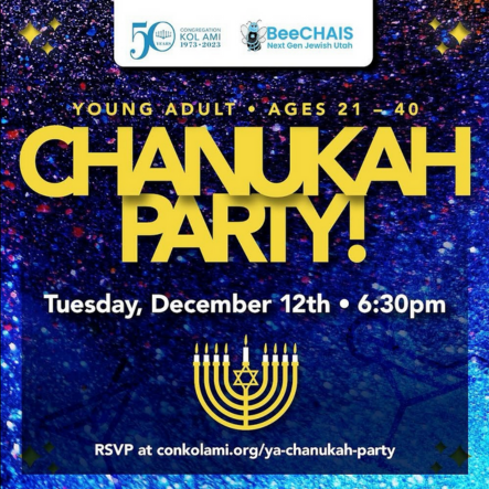 Young adults, ages 21 – 40, are invited to join Rabbi Spector and BeeCHAIs:Next Gen Jewish Utah, for a Chanukah party with refreshments, latkes, a chanukiah lighting, and more!